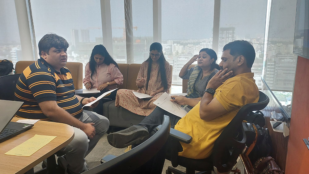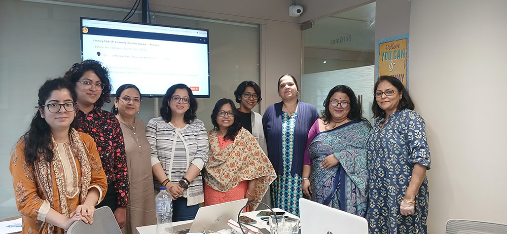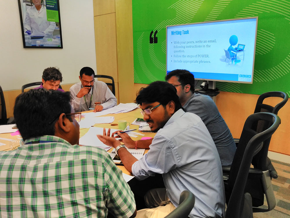 GALLERY Home >> Gallery Gallery TTT- Narayana group of Schools TTT- Ekal Abhiyan 2019 TTT – Mehsana, Gujarat TTT – Bihani Academy 2025 Teacher Training- MP Birla group of schools 2025 Large scale language assessments-Educational Initiatives 2024-2025 Employability Skills- Sammilani Mahavidyalaya Business English- SUEZ 2019 Business Communications – Driplex Water Engineering 2019 Business Communication Skills – Thinkbridge 2024 Business English at Digital Avenues, Kolkata, 2017 Business Communication Skills Workshop at Indian Oil Management Academy, 2017 Teacher Training at Narayana Group of Schools, Kolkata, 2019 Presentation Skills at Titan, Mumbai, 2018 Email Etiquette at Titan, Bangalore, 2018 Communication Skills Training at NIFT, Kolkata, 2018 Talespin at Garden High School IISER, Kalyani, 2016 Communication Skills and Team Building at NIFT, Kolkata, 2017